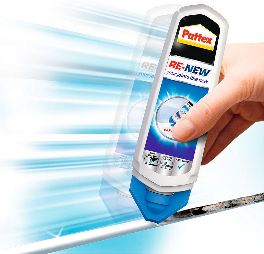 A Barbocol apresenta o novo Pattex Re-New , um revestimento de silicone para renovar e reparar vedações de silicone antigas.