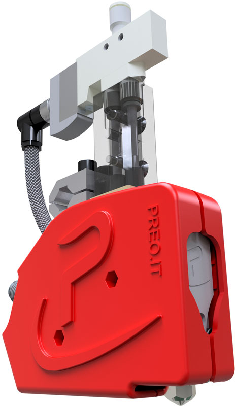 PISTOLAS - EXTRA (MINI RED)    A natural evolução dos processos de trabalho e o constante empenho para estar sempre na vanguarda da produção de sistemas de alta qualidade fez com que a PREO desenvolvesse a Série EXTRA, uma nova série de mini-pistolas de aplicação, tecnologicamente evoluídas e com características totalmente novas no sector. Com um corpo da pistola de apenas 22 mm, é possível atingir velocidades até 6.000 ciclos/minuto. Vêm equipadas com os novos mini-módulos AMX 45, com sistema Zero-Cavity (efeito de auto-limpeza que evita entupimentos), electroválvula e mini-filtro já incorporado, com a vantagem de ser substituído sem necessidade de remover a mangueira. Esta pistola, estéticamente apelativa, é sugerida para pequenos espaços.
